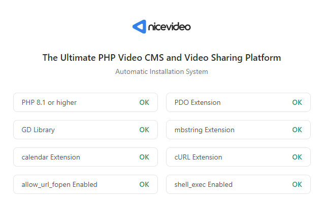 To ensure the NiceVideo script runs smoothly on your server, make sure your server/system requirements meet the plugin and other requirements needed for the script.