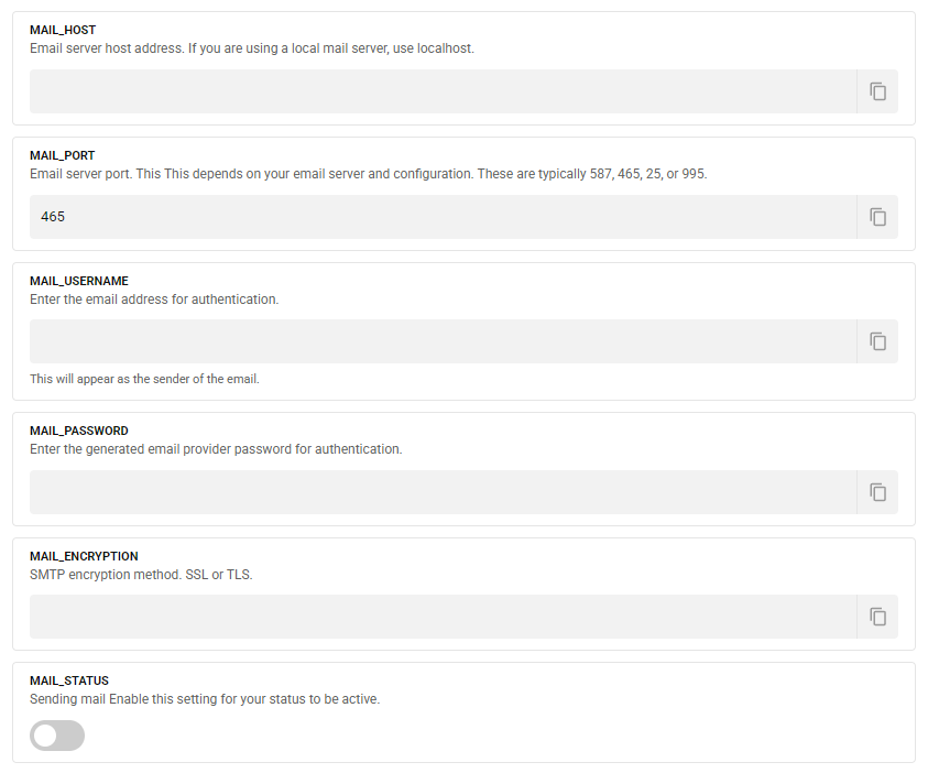 - SQL Username - MySQL username.