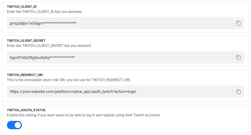 Finally, enable the Twitch login system by activating the